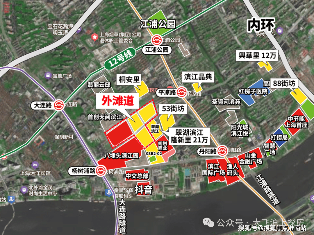 同时,曲线公里内还有新建地道、大连地道、江浦地道以及杨浦大桥中转浦东。从项目到陆家嘴、北外滩和外滩都正在15分钟以内(百度地图丈量)。