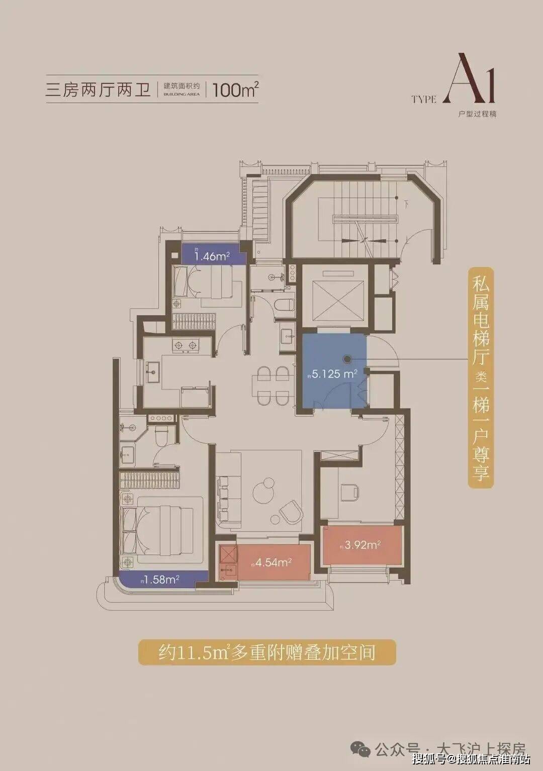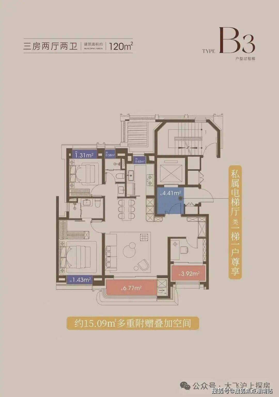 同时,这个户型具有一个好户型该当有的所有特质:一梯一户、三阳台、从卧奢华套房、双厨。。。妥妥的终极改善产物。